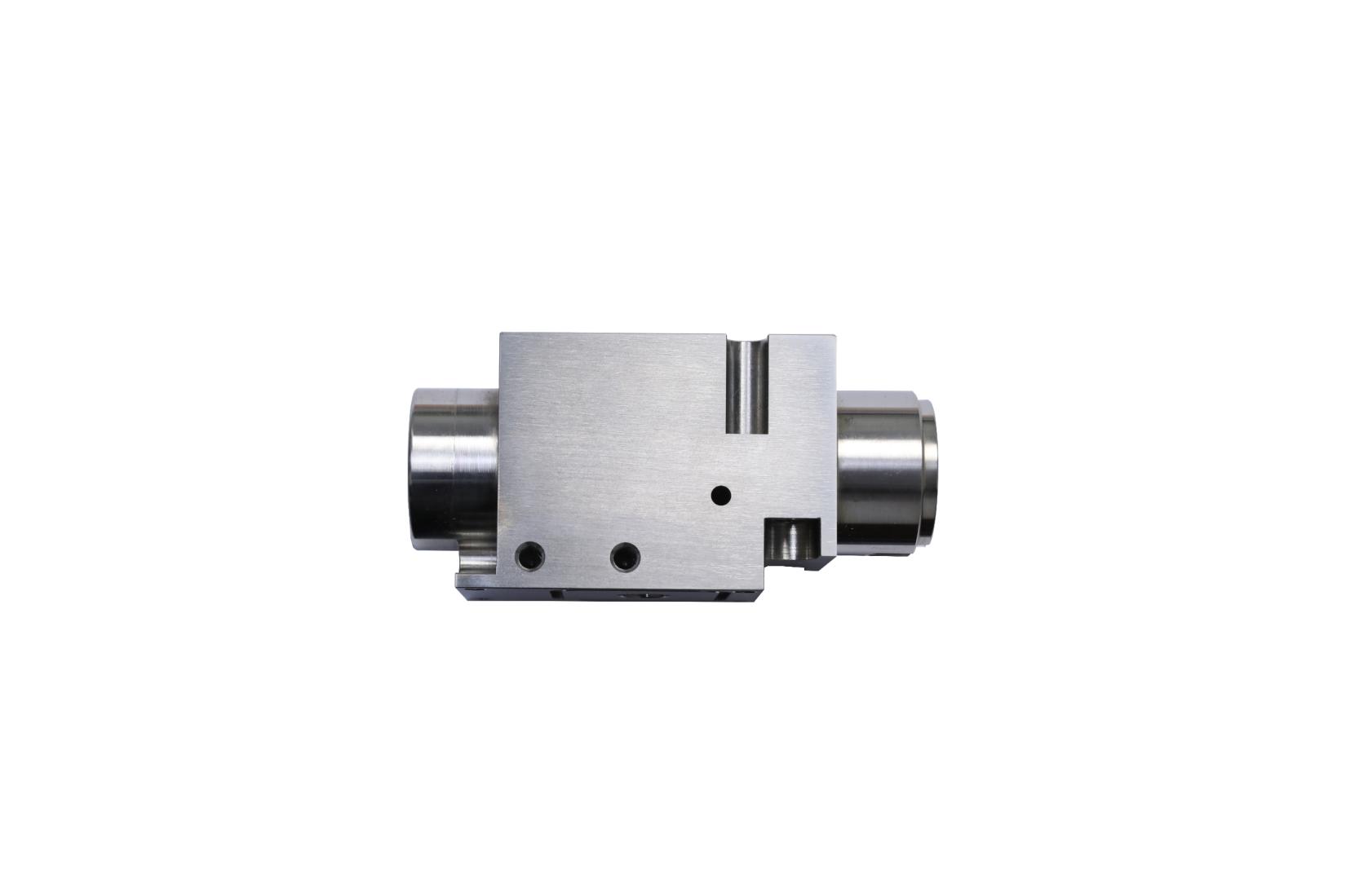 产品名:HGA弹性臂压块 材 料:440C或CD650钨钢 主要工艺:电火花,慢走丝、平磨 技术难点: --零件尺寸小而几何尺寸/形位公差精度极精; --所有精孔尺寸/位置精度0.003mm由慢走丝/镗磨加工; --顶部十余处电火花加工异型浅槽轮廓/深度公差0.003mm --整体金刚石涂层 | 产品名:PZT载板 材料: Al 6061-T6 主要工艺:CNC 技术难点: --所有120控制孔径公差0.005mm以及位置度公差0.005mm. --硬质黑色氧化处理后保证整体平面度0.02mm以内。 | ![]() 产品名:集成安装盒 材料:AL6061 主要工艺:CNC,硬黑氧化+化学转化膜 技术难点: -- CNC多轴加工;六面平面度、平行度、垂直度全部0.005~0.01mm; --三面精孔位置度0.01以内; --近300处尺寸由CNC多次/多面加工/CMM三坐标测量确保。 |